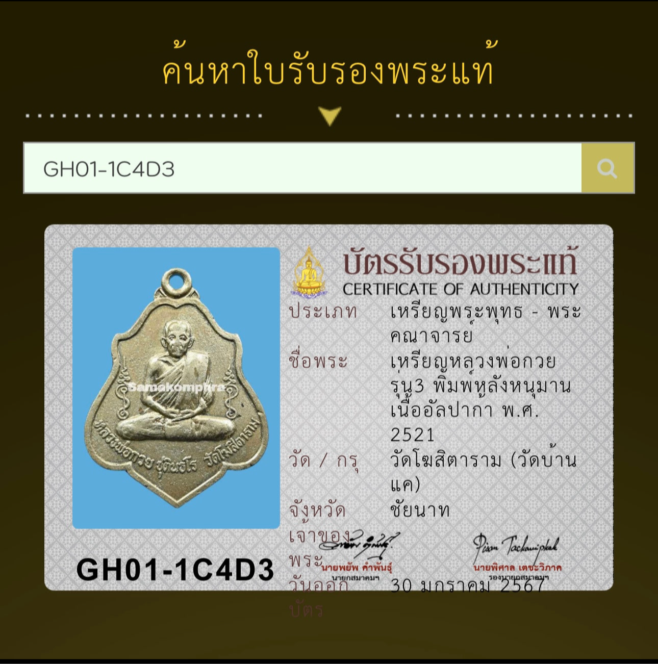The Rian Lang Hanuman BE2521 was consecrated by the highly respected Luang Phor Kuay of Wat Kositaram, Chainat. Luang Phor Kuay is one of the most revered monks of the 20th century, well-known for his powerful blessings and sacred amulets.
